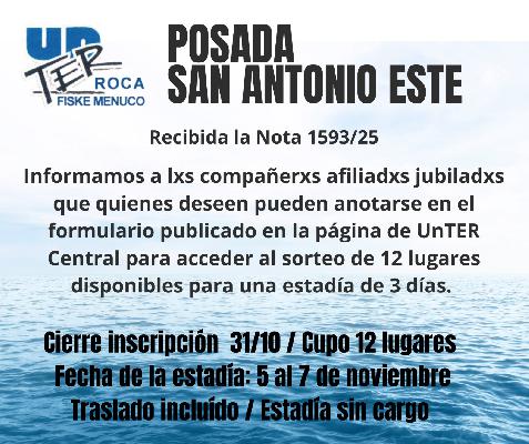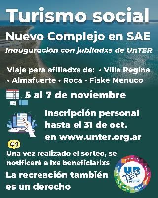 Inscripción inaugural de la posada adquirida por la Comisión Centralde UnTER, para todos y todas , siendo la recreación un derecho.